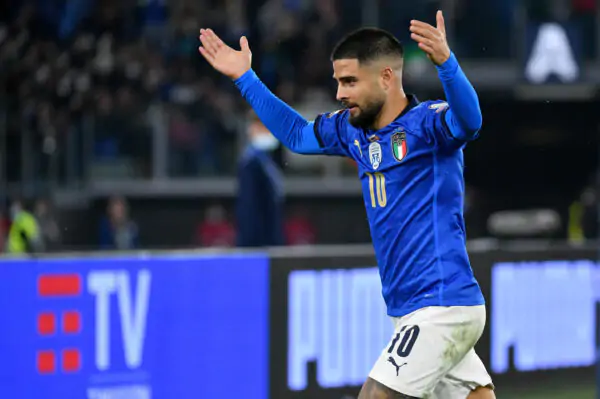 ROME, ITALY - NOVEMBER 12: Lorenzo Insigne of Italy reacts during the 2022 FIFA World Cup Qualifier match between Italy and Switzerland at Stadio Olimpico on November 12, 2021 in Rome, Italy. (Photo by Marco Rosi/Getty Images)