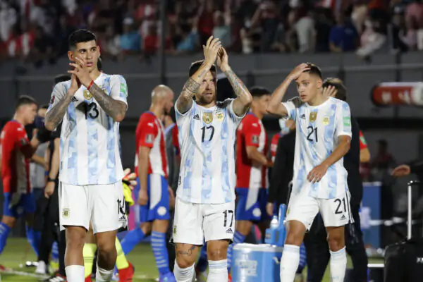 ASUNCION, PARAGUAY - OCTOBER 07: Alejandro Gomez of Argentina greets the fans after a match between Paraguay and Argentina as part of South American Qualifiers for Qatar 2022 at Estadio Defensores del Chaco on October 07, 2021 in Asuncion, Paraguay. (Photo by Christian Alvarenga/Getty Images)