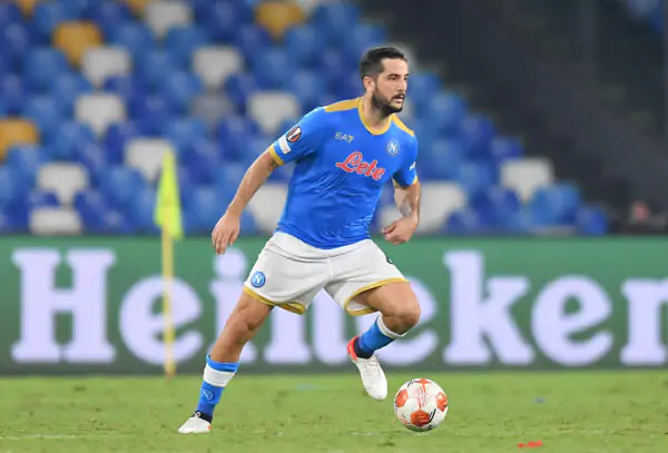 NAPLES, ITALY - SEPTEMBER 30: Konstantinos Manolas of SSC Napoli controls the ball during the UEFA Europa League group C match between SSC Napoli and Spartak Moskva at Stadio Diego Armando Maradona on September 30, 2021 in Naples, Italy. (Photo by Francesco Pecoraro/Getty Images)