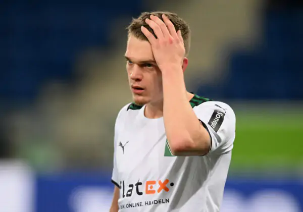 SINSHEIM, GERMANY - DECEMBER 18: Matthias Ginter Borussia Mönchengladbach reacts during the Bundesliga match between TSG Hoffenheim and Borussia Mönchengladbach at PreZero-Arena on December 18, 2021 in Sinsheim, Germany. (Photo by Matthias Hangst/Getty Images)