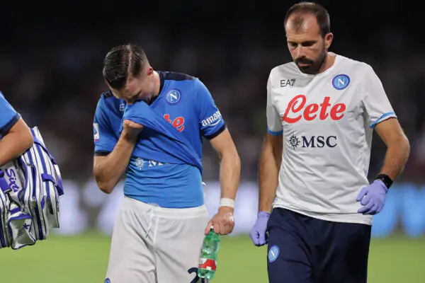 Piotr Zielinski of SSC Napoli leaves the pitch injured during the Serie A football match between SSC Napoli and Venezia FC at Diego Armando Maradona stadium in Napoli Italy, August 22th, 2021. Photo Cesare Purini / Insidefoto CesarexPurini