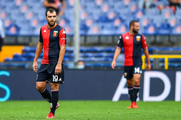 GENOA, ITALY - SEPTEMBER 18: Goran Pandev of Genoa (L) reacts with disappointment after Giacomo Bonaventura of Fiorentina's goal during the Serie A match between Genoa CFC and AFC Fiorentina at Stadio Luigi Ferraris on September 18, 2021 in Genoa, Italy. (Photo by Getty Images)