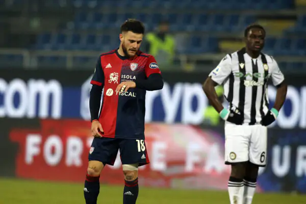 CAGLIARI, ITALY - DECEMBER 18: Nahitan Nandez of Cagliari looks on during the Serie A match between Cagliari Calcio and Udinese Calcio at Sardegna Arena on December 18, 2021 in Cagliari, Italy. (Photo by Enrico Locci/Getty Images)
