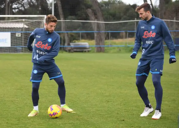 Seduta mattutina per il Napoli all’SSC Napoli Konami Training Center. Gli azzurri preparano il match contro la Salernitana in programma allo Stadio Maradona domenica alle ore 15 per la 23esima giornata di Serie A.