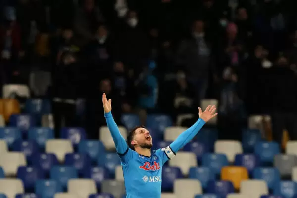 NAPLES, ITALY - DECEMBER 04: Dries Mertens of SSC Napoli celebrates after scoring their side's second goal during the Serie A match between SSC Napoli v Atalanta BC at Stadio Diego Armando Maradona on December 04, 2021 in Naples, Italy. (Photo by Francesco Pecoraro/Getty Images)