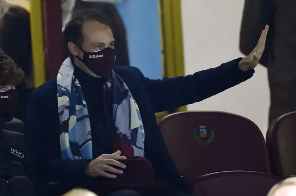 SALERNO, ITALY - JANUARY 15: Danilo Iervolino new US Salernitana President sits in the stands in his first appearance as new owner before the Serie A match between US Salernitana and SS Lazio at Stadio Arechi on January 15, 2022 in Salerno, Italy. (Photo by Francesco Pecoraro/Getty Images)