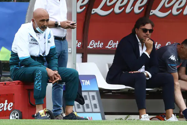 Dimaro, Italy : Luciano Spalletti coach of SSC Napoli and Cristiano Giuntoli sporting director of SSC Napoli during the pre-season friendly match SSC Napoli - FC Pro Vercelli training session in Dimaro, Italy. Photo by Fotoagenzia Copyright: xFOTOAGENZIAx