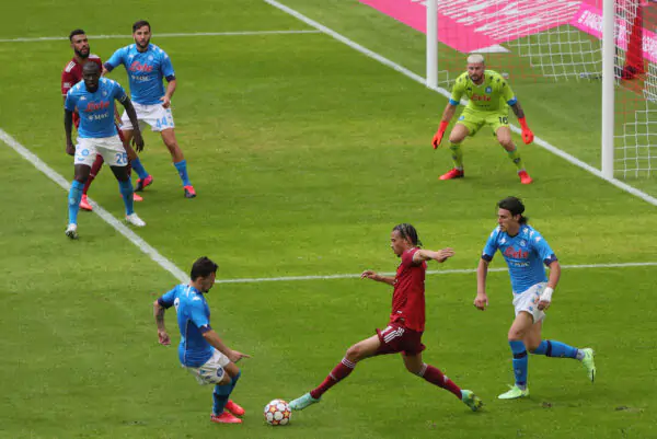 31.07.2021, FC Bayern vs SSC Napoli, Allianz Arena Muenchen, Fussball, im Bild: Mario Rui SSC Napoli, Leroy Sane FCB, Eljif Elmas SSC Napoli, Kalidou Koulibaly SSC Napoli, Eric Maxim Choupo-Moting FCB, Kostandinos Manolas SSC Napoli und Nikita Contini SSC Napoli *** 31 07 2021, FC Bayern vs SSC Napoli, Allianz Arena Munich, football, sports, in the picture Mario Rui SSC Napoli , Leroy Sane FCB , Eljif Elmas SSC Napoli , Kalidou Koulibaly SSC Napoli , Eric Maxim Choupo Moting FCB , Kostandinos Manolas SSC Napoli and Nikita Contini SSC Napoli