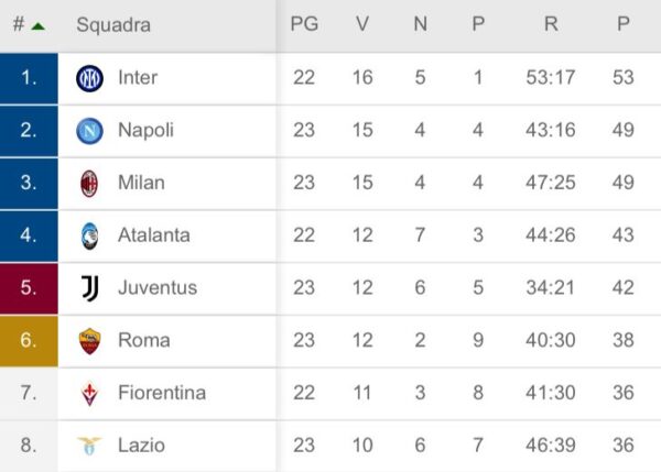 Dietro a questo mercato “passivo” da parte della società, c’è la convinzione che la rosa di mister Luciano Spalletti sia alla portata dell’obbiettivo stagionale: la qualificazione alla prossima Champions League. Dopotutto, il Napoli è in questo momento secondo, pari al Milan, a più 7 sulla Juve quinta. Ha la migliore difesa del campionato, con appena 16 gol subiti in 23 partite, oltre alla seconda miglior differenza reti, dietro all’Inter. Ha vinto le prime 8 gare del campionato, perdendo la prima partita in Serie A il 21 novembre, contro l’Inter adesso capolista .
