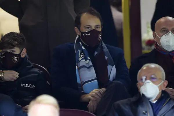 SALERNO, ITALY - JANUARY 15: Danilo Iervolino new US Salernitana President sits in the stands in his first appearance as new owner before the Serie A match between US Salernitana and SS Lazio at Stadio Arechi on January 15, 2022 in Salerno, Italy. (Photo by Francesco Pecoraro/Getty Images)