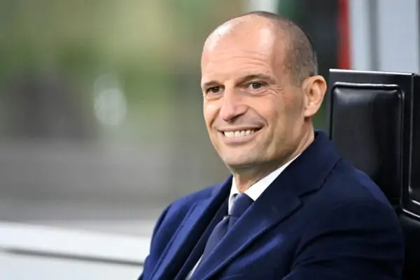 Juventus' Italian head coach Massimiliano Allegri smiles prior to the Italian Serie A football match between AC Milan and Juventus on January 23, 2022 at the San Siro stadium in Milan. (Photo by Alberto PIZZOLI / AFP) (Photo by ALBERTO PIZZOLI/AFP via Getty Images)