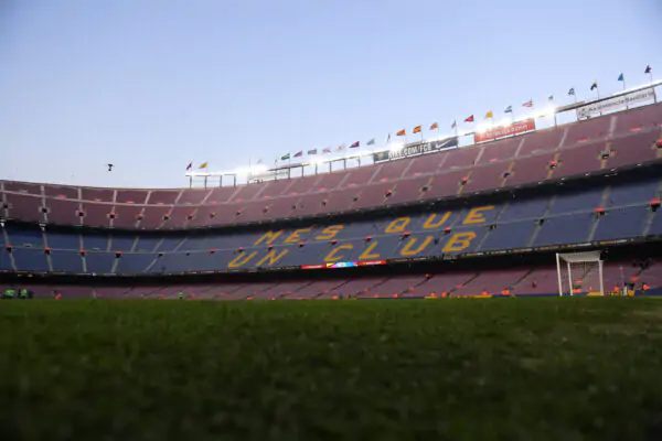 BARCELONA, SPAIN - DECEMBER 18: General view inside the stadium prior to the LaLiga Santander match between FC Barcelona and Elche CF at Camp Nou on December 18, 2021 in Barcelona, Spain. (Photo by Alex Caparros/Getty Images)