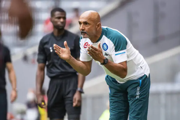 31.07.2021, xkvx, Fussball Testspiel, FC Bayern Muenchen - SSC Neapel emspor, v.l. Trainer Luciano Spalletti SSC Neapel gibt Anweisung, gestikuliert, mit den Armen gestikulieren, gives instructions, gesticulate DFL/DFB REGULATIONS PROHIBIT ANY USE OF PHOTOGRAPHS as IMAGE SEQUENCES and/or QUASI-VIDEO Muenchen *** 31 07 2021, xkvx, football test match, FC Bayern Muenchen SSC Napoli emspor, v l coach Luciano Spalletti SSC Napoli gives instructions, gesticulate, gesticulate with arms, gives instructions, gesticulate DFL DFB REGULATES PROHIBIT ANY USE OF PHOTOGRAPHS AS IMAGE SEQUENCES AND OR QUASI VIDEO Muenchen
