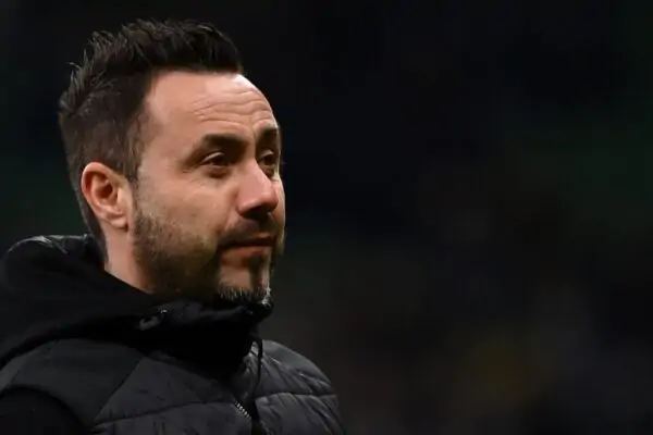 Shakhtar Donetsk's Italian head coach Roberto De Zerbi looks on prior to the UEFA Champions League Group D Football match between Inter Milan and Shakhtar Donetsk on November 24, 2021 at the San Siro stadium in Milan. (Photo by Marco BERTORELLO / AFP) (Photo by MARCO BERTORELLO/AFP via Getty Images)
