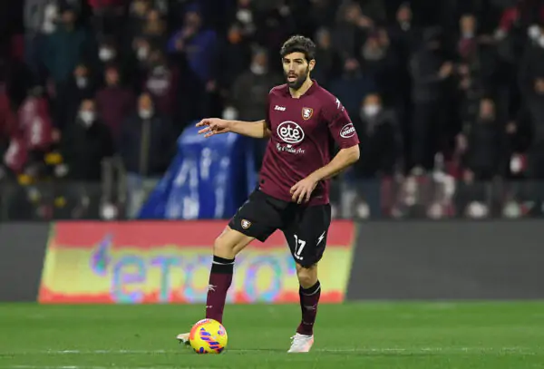 SALERNO, ITALY - FEBRUARY 07: Federico Fazio of US Salernitana during the Serie A match between US Salernitana and Spezia Calcio at Stadio Arechi on February 07, 2022 in Salerno, Italy. (Photo by Francesco Pecoraro/Getty Images)