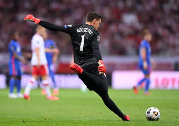 WARSAW, POLAND - SEPTEMBER 08: Wojciech Szczesny of Poland clears the ball during the 2022 FIFA World Cup Qualifier match between Poland and England at Stadion Narodowy on September 08, 2021 in Warsaw, Poland. (Photo by Michael Regan/Getty Images)