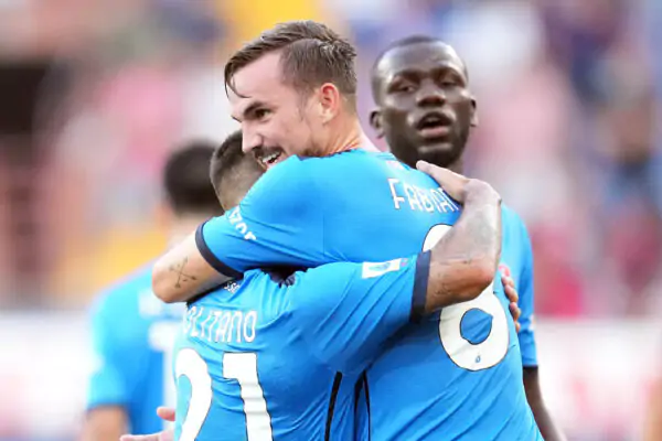 GENOA, ITALY - AUGUST 29: Fabian Ruiz of SSC Napoli celebrates with Matteo Politano during the Serie A match between Genoa CFC and SSC Napoli at Stadio Luigi Ferraris on August 29, 2021 in Genoa, Italy Copyright: xFOTOAGENZIAx