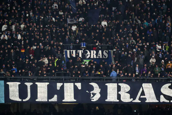 NAPLES, ITALY - FEBRUARY 24: SSC Napoli supporters during the UEFA Europa League Knockout Round Play-Offs Leg Two match between SSC Napoli and FC Barcelona at Stadio Diego Armando Maradona on February 24, 2022 in Naples, Italy. (Photo by Francesco Pecoraro/Getty Images)