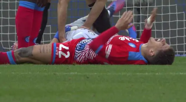 ORE 16.48 – Non arrivano buone notizie per il Napoli che dopo l’ammonizione a Rrahmani diffidato, spera invece in nulla di grave per Giovanni Di Lorenzo vittima di un brutto scontro con Silvestri. I due si sono scontrati dopo la battuta del Napoli di un fallo di punizione con il seguente ingresso dello staff medico in campo.
