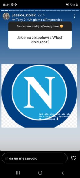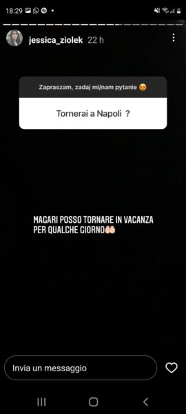 Infatti, come si può vedere attraverso alcune Instagram Stories, gli è stato chiesto per quale squadra italiana faccia il tifo e lei ha pubblicato lo stemma della squadra azzurra aggiungendo anche il celebre coro “Un giorno all’Improvviso”. Ma non solo: a chi gli ha chiesto se prima o poi tornerà a Napoli lei ha risposto che presto potrebbe tornarci in vacanza per qualche giorno.