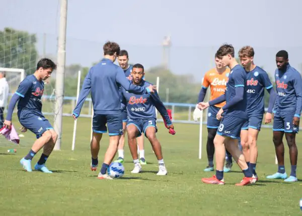 “Seduta mattutina per il Napoli all’SSC Napoli Konami Training Center. Gli azzurri si allenano nella settimana della sosta per gli impegni delle Nazionali. Il campionato riprenderà domenica 3 aprile con Atalanta-Napoli. La squadra ha svolto una prima fase di torello e successivamente partitina a campo ridotto. Il gruppo tornerà ad allenarsi martedì. Petagna e Ounas hanno fatto terapie e palestra. Meret ha svolto terapie e piscina. Terapie per Anguissa“.