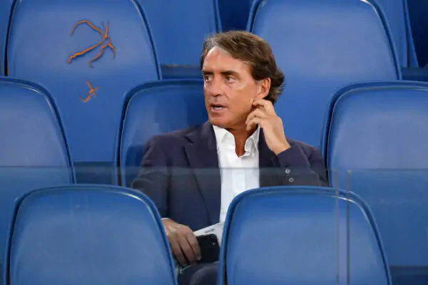 ROME, ITALY - JUNE 17: Roberto Mancini head coach of Italia National team looks on before the Coppa Italia Final match between Juventus and SSC Napoli at Olimpico Stadium on June 17, 2020 in Rome, Italy. (Photo by Marco Rosi/Getty Images)