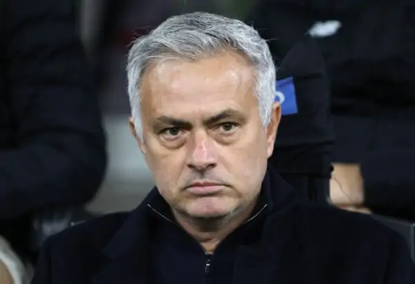 MILAN, ITALY - FEBRUARY 08: AS Roma coach Jose’ Mourinho looks on before the Coppa Italia match between FC Internazionale and AS Roma at Stadio Giuseppe Meazza on February 08, 2022 in Milan, Italy. (Photo by Marco Luzzani/Getty Images)