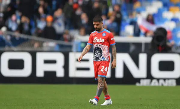 NAPLES, ITALY - APRIL 10: Lorenzo Insigne of SSC Napoli looks dejected during the Serie A match between SSC Napoli and ACF Fiorentina at Stadio Diego Armando Maradona on April 10, 2022 in Naples, Italy. (Photo by Francesco Pecoraro/Getty Images)