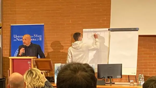 Simpatico siparietto nel corso dell’incontro organizzato all’Università Federico II con il tecnico del Napoli, Luciano Spalletti, per l’evento “Lo Sport in Accademia“. L’allenatore ha infatti chiesto a uno studente di scrivere su una lavagna la formazione del Napoli.