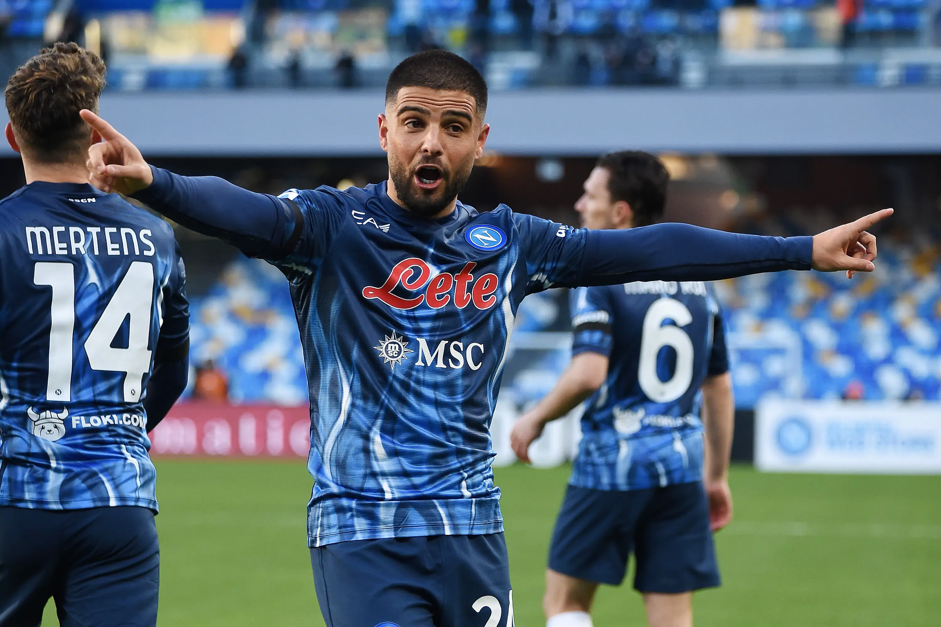 NAPLES, ITALY - JANUARY 23: Lorenzo Insigne of SSC Napoli celebrates after scoring the 4-1 goal during the Serie A match between SSC Napoli and US Salernitana at Stadio Diego Armando Maradona on January 23, 2022 in Naples, Italy. (Photo by Francesco Pecoraro/Getty Images)