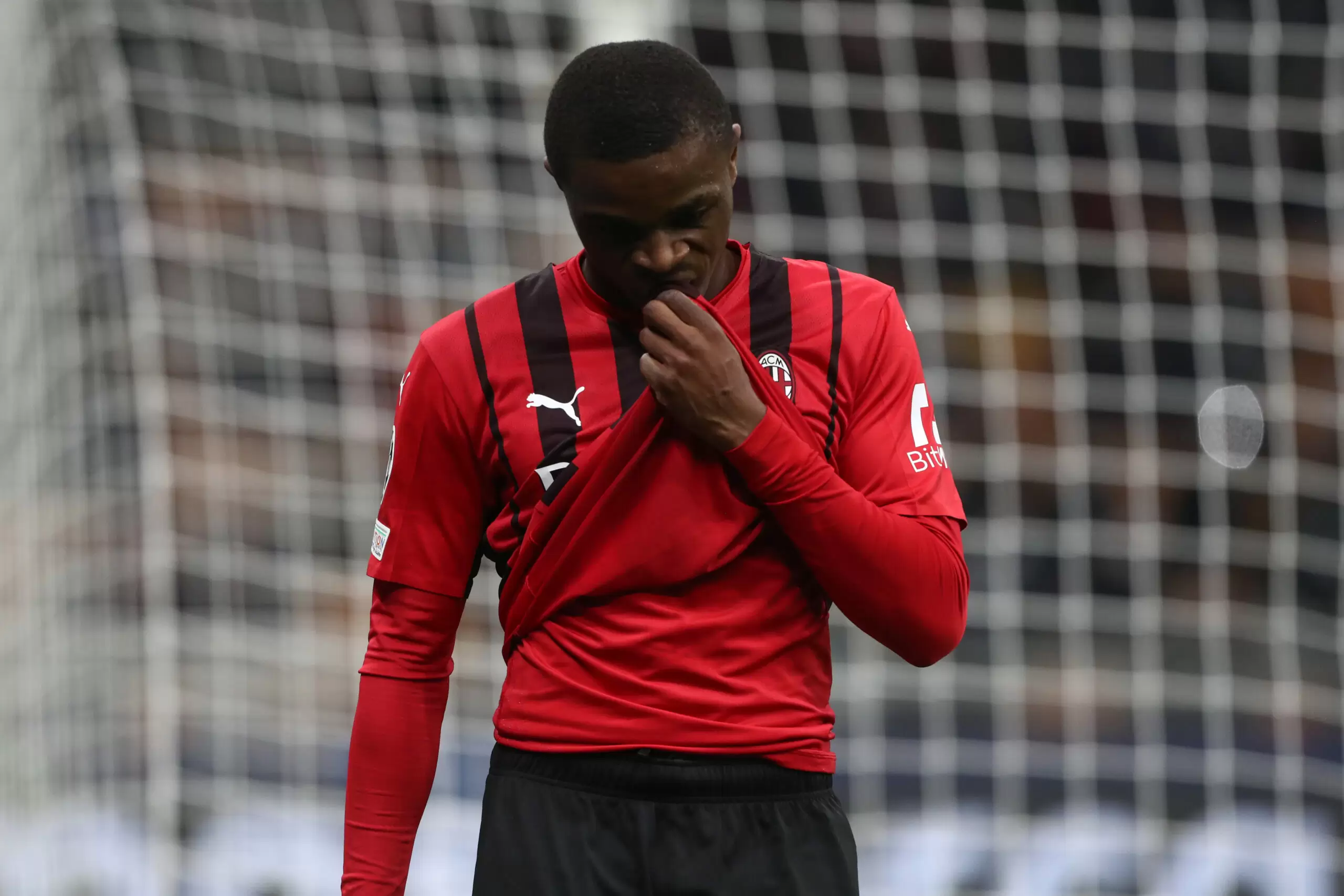 MILAN, ITALY - DECEMBER 07: Pierre Kalulu of AC Milan reacts during the UEFA Champions League group B match between AC Milan and Liverpool FC at Giuseppe Meazza Stadium on December 07, 2021 in Milan, Italy. (Photo by Marco Luzzani/Getty Images)