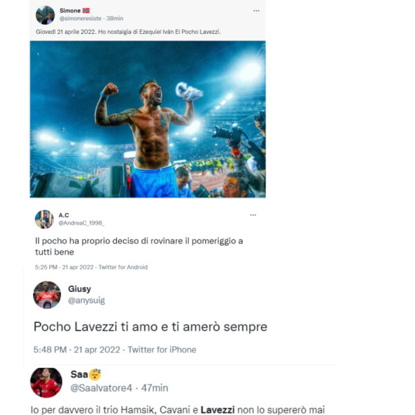 Non appena Lavezzi ha pubblicato la foto sul suo profilo Instagram, i tifosi del Napoli hanno ricordato le grandi azioni e i grandi momenti vissuti con il Pocho allo Stadio San Paolo. Sui social, e in particolare su Twitter, tantissimi tifosi hanno pubblicato i propri ricordi del Lavezzi napoletano.