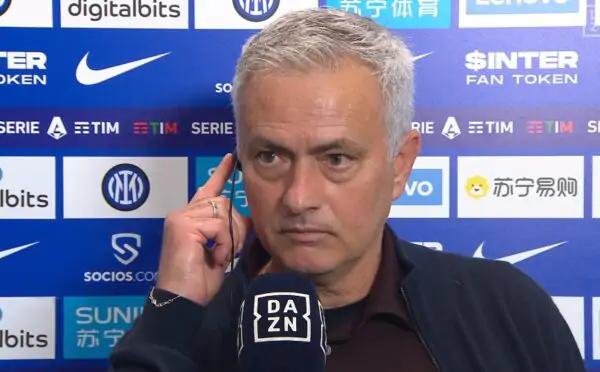 Nel post-partita, il tecnico giallorosso José Mourinho ha fatto i complimenti all’Inter e all’arbitro Sozza. Un’intervista completamente diversa rispetto a quella del Maradona, in cui aveva accusato l’arbitro Di Bello.