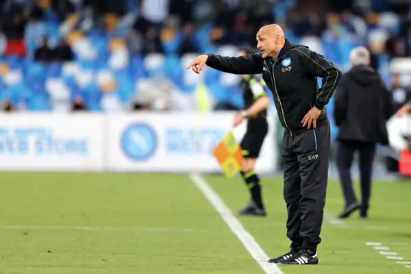 NAPLES, ITALY - APRIL 18: Luciano Spalletti, Manager of Napoli, reacts during the Serie A match between SSC Napoli and AS Roma at Stadio Diego Armando Maradona on April 18, 2022 in Naples, Italy. (Photo by Francesco Pecoraro/Getty Images)