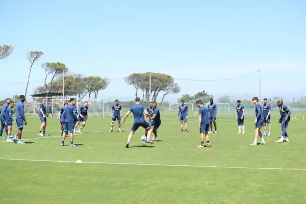 “Seduta mattutina per il Napoli all’SSC Napoli Konami Training Center. Gli azzurri preparano il match contro il Sassuolo in programma sabato allo Stadio Maradona alle ore 15. Ad assistere all’allenamento anche il Presidente De Laurentiis che ha seguito da bordo campo tutta la seduta. La squadra dopo una prima fase di attivazione e torello ha svolto partite a tema e situazioni tattiche. Elmas ha svolto l’intera seduta in gruppo. Lobotka ha svolto personalizzato in campo. Ounas non si è allenato per sindrome influenzale.