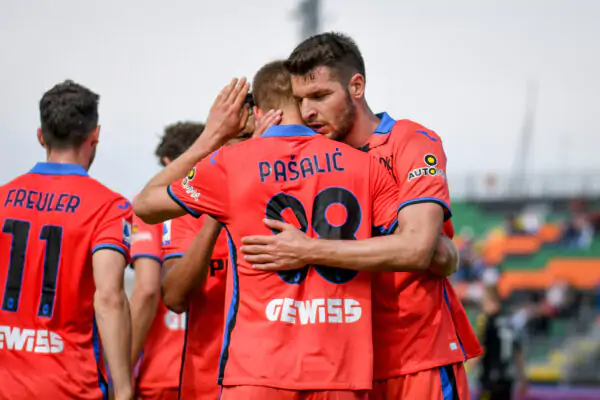 VENICE, ITALY - APRIL 23: Mario Pasalic of Atalanta celebrates after scoring his team's opening goal during the Serie A match between Venezia FC and Atalanta BC at Stadio Pier Luigi Penzo on April 23, 2022 in Venice, Italy. (Photo by Maurizio Lagana/Getty Images)