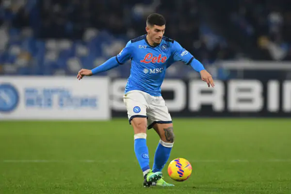 NAPLES, ITALY - DECEMBER 22: Giovanni Di Lorenzo of SSC Napoli during the Serie A match between SSC Napoli and Spezia Calcio at Stadio Diego Armando Maradona on December 22, 2021 in Naples, Italy. (Photo by Francesco Pecoraro/Getty Images)