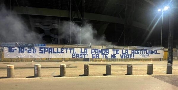 Continua anche in queste ore la contestazione di alcuni tifosi del Napoli: proprio negli ultimi minuti è apparso uno striscione fuori lo Stadio Diego Armando Maradona contro l’allenatore azzurro, Luciano Spalletti. Il tecnico di Certaldo è ormai finito nell’occhio del ciclone e l’impressione è che non ci uscirà entro breve.