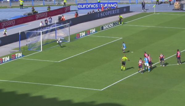 Le circostanze del gol sono però piuttosto particolari: Insigne aveva infatti inizialmente sbagliato il rigore, calciandolo sul palo. Il pallone è poi finito sui piedi di Giovanni Di Lorenzo, che è riuscito a buttare il pallone in porta. L’arbitro ha però ordinato la ripetizione del rigore e, al secondo tentativo, Insigne non ha sbagliato.