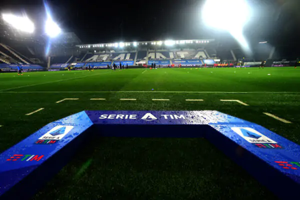 BERGAMO, ITALY - DECEMBER 20: The arch with the logo of serie A is displayed prior the Serie A match between Atalanta BC and AS Roma at Gewiss Stadium on December 20, 2020 in Bergamo, Italy. Sporting stadiums around Italy remain under strict restrictions due to the Coronavirus Pandemic as Government social distancing laws prohibit fans inside venues resulting in games being played behind closed doors. (Photo by Pier Marco Tacca/Getty Images)