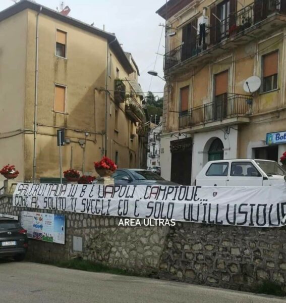 All’indomani della salvezza, i tifosi granata, che fino a qualche domenica fa speravano nella vittoria degli azzurri contro il Genoa, hanno esposto nelle strade della città uno striscione assai discutibile contro il Napoli che così cita: “Salernitana in B e Napoli Campione… Come al solito ti svegli ed è solo un’illusione”.