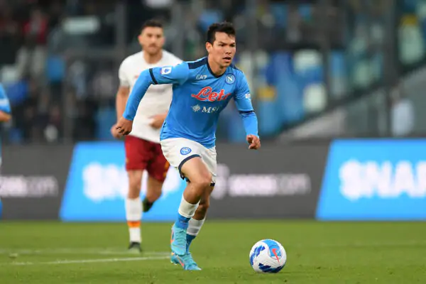 NAPLES, ITALY - APRIL 18: Hirving Lozano of SSC Napoli during the Serie A match between SSC Napoli and AS Roma at Stadio Diego Armando Maradona on April 18, 2022 in Naples, Italy. (Photo by Francesco Pecoraro/Getty Images)