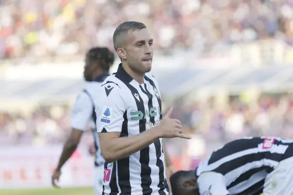 FLORENCE, ITALY - APRIL 27: Gerard Deulofeu of Udinese Calcio celebrates after scoring a goal during the Serie A match between ACF Fiorentina and Udinese Calcio at Stadio Artemio Franchi on April 27, 2022 in Florence, Italy. (Photo by Gabriele Maltinti/Getty Images)