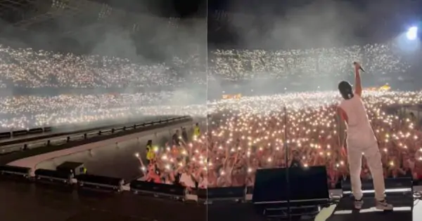 Sul finire del concerto, però, c’è stata una scena da pelle d’oca: nel momento in cui il cantante è rientrato in camerino a cambiarsi prima dell’ultima canzone, dalla curva è partito il celebre coro “Un giorno all’improvviso”. A quel punto, tutto lo stadio ha iniziato a intonare il coro del Napoli e ha reso l’atmosfera magica.