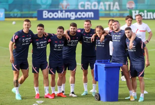 (From L) Croatia's players forward Ivan Perisic, forward Josip Brekalo, defender Josip Juranovic, defender Josko Gvardiol, defender Borna Barisic, forward Luka Modric, forward Ante Rebic and midfielder Luka Ivanusec take part in a training session at the Rovinj Stadium in Rovinj on June 20, 2021, during the UEFA EURO 2020 European Football Championship. (Photo by Damir SENCAR / AFP) (Photo by DAMIR SENCAR/AFP via Getty Images)