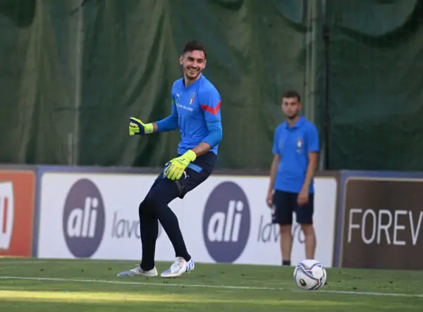 FLORENCE, ITALY - JUNE 02: Alex Meret of Italy in action during a Italy training session at Centro Tecnico Federale di Coverciano on June 02, 2022 in Florence, Italy. (Photo by Claudio Villa/Getty Images)