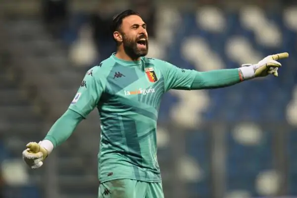 REGGIO NELL'EMILIA, ITALY - JANUARY 06: Salvatore Sirigu of Genoa CFC reacts during the Serie A match between US Sassuolo and Genoa CFC at Mapei Stadium - Citta' del Tricolore on January 06, 2022 in Reggio nell'Emilia, Italy. (Photo by Alessandro Sabattini/Getty Images)