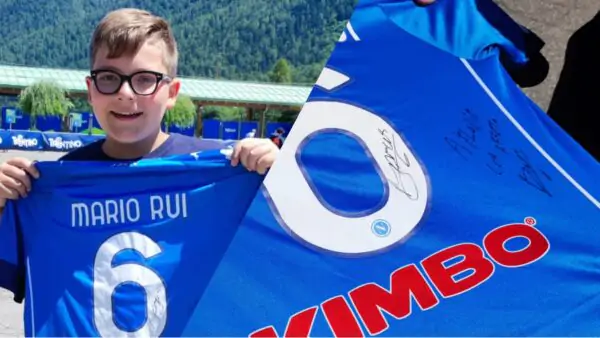 A volte bisogna saper aspettare pe poter realizzare i propri sogni. Oggi questa lezione l’ha imparata il giovane Flavio, tifoso azzurro di tredici anni presente al ritiro di Dimaro. Lo scorso anno, nel corso del ritiro di Castel Di Sangro, intervistammo il giovane tifoso, fan di Mario Rui che avrebbe voluto la su maglia numero 6 del Napoli autografata dal terzino del Napoli.