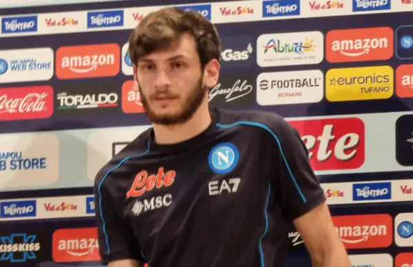 Khvicha Kvaratskhelia, neo acquisto del Napoli, ha parlato in conferenza stampa in diretta da Dimaro nel giorno della sua presentazione. Tra i vari temi affrontati, la motivazione che lo ha spinto a scegliere il numero 77 e il clima che si respira all’interno dello spogliatoio. Di seguito quanto evidenziato: