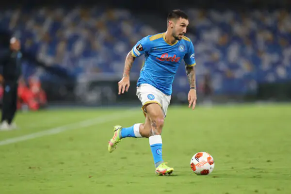 NAPLES, ITALY - SEPTEMBER 30: Matteo Politano of SSC Napoli runs with the ball during the UEFA Europa League group C match between SSC Napoli and Spartak Moskva at Stadio Diego Armando Maradona on September 30, 2021 in Naples, Italy. (Photo by Francesco Pecoraro/Getty Images)